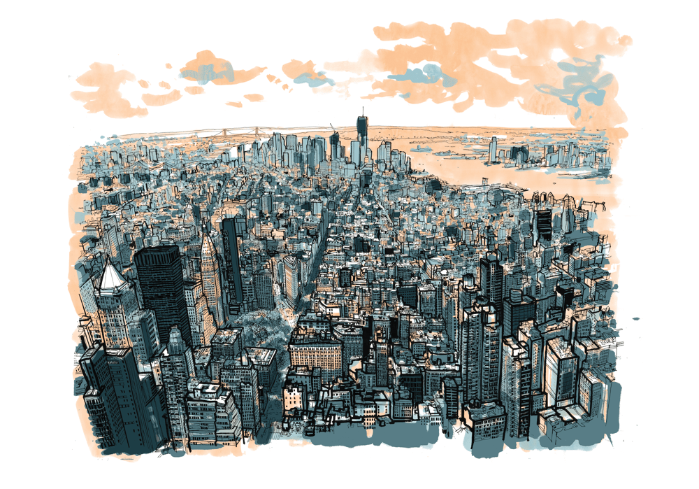 I made this drawing of Manhattan in 2012 after spending a few hours sketching and researching on location. I captured the resulting large drawing in a time-lapse film which showed the process over a week. This film ended up going "viral" on the internet and i received press all over the world.